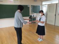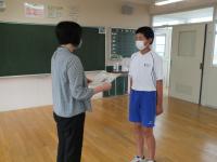 1学期終業式に先立ち、県大会などの表彰披露がありました。