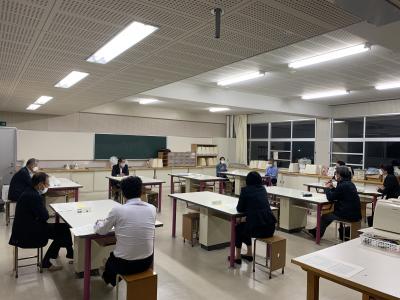 この日、まず前半は教科代表の先生が集まり、各教科の取り組みについて意見交換しました。