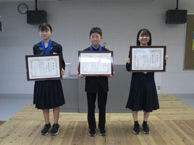「能美市子ども未来創造フェスティバル」で優秀賞を受賞した生徒のみなさんに