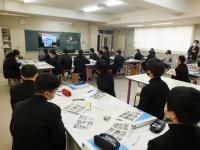 今年度は、オンラインと学校での対面方式のハイブリッドで実施し、生徒が6つのグループに分かれ、12社の地元企業の皆様にご協力を頂き、「企業が地域社会に果たす役割」や「地域の企業で働くことの意義」などについてお話を伺いました。