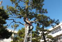青空が気持ちよいこの日、中庭にある松の木の剪定(せんてい)作業がありました。