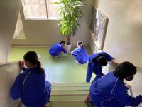 この2日間、学校待機組の3年生が、教室や廊下、階段やトイレなど、校内の美化活動に取り組んでくれました。