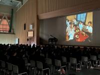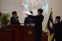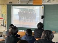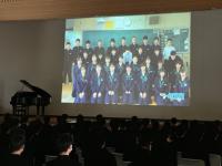 そして、生徒会が作成した映像上映がありました。1・2年生各クラスからお祝いメッセージ、3年生がかつてお世話になった懐かしい先生方からのお祝いメッセージ、卒業に向けてたくさんの人達からのお祝いメッセージが届けられました。1年生の頃のあどけない姿から、本当に3年間の成長を感じましたね。