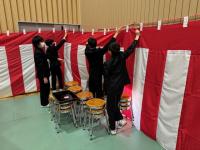 2年生は式場準備、3年生の教室の飾り付け、校内の掲示など。