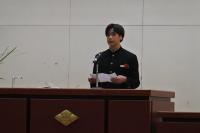最初に1・2年生の代表生徒が、学校行事や部活動での3年生姿や思い出を語りました。続いて3年生代表生徒からはこれまでの学校生活の思い出や後輩や先生へのメッセージが語られました。