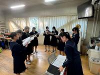 ステージ上での合唱はもちろんですが、出入りやクラス紹介の所作など一通りの確認を行いました。