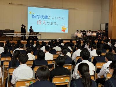 探究学習の集大成としてさすが3年生という発表でした。根拠となる資料を分析し課題を設定、その解決に向けアイデアや取り組みを提言することができました。後輩たちにも良い手本となる発表でした。
