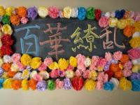 1つめは体育館の壁に掲げられた「百花繚乱モニュメント」。