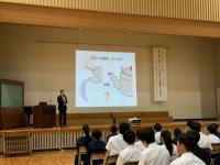 空治さんが、落語と出会いその道を進んでいく中で、「がまんすることの大切さに気付いた。」というお話が印象的でした。「落語に出会い変わったことは何ですか?」という生徒からの質問に対してのお話でした。