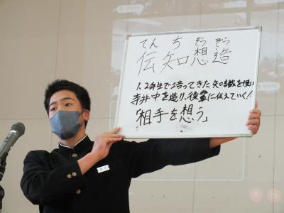 3年生代表あいさつの際には、3年生学年目標も紹介されました。