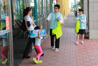 10月3日(月)の放課後に、アビオシティ前で、啓発文とティッシュと花の種が入った袋を買い物のお客さんに手渡し、ポイ捨てのないきれいな町づくりを呼びかけることができました。