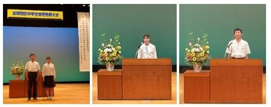 本校からは加賀市中学生意見発表大会で優秀賞、特別賞をいただいた2名が参加し、自分の意見を堂々と発表していました。前回よりも表現力を増した素晴らしい発表で、最優秀賞と奨励賞をいただくことができました。