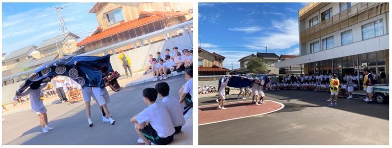 8月28日(水)に開催されたぐず焼き祭りで、動橋青年獅子舞が東和中学校でも演舞をしてくれました。当日学校で活動していた部活動の生徒や3年生の生徒が生徒玄関に集まり、獅子舞を見ることができました。