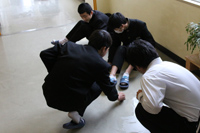 ・生徒玄関内で受付を行い、検温と手洗いを行ったあと活動する。