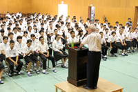 全校登校日で全国・北信越大会激励会、平和集会を行いました