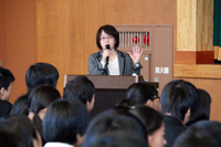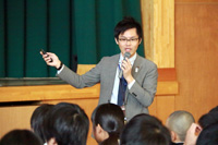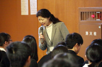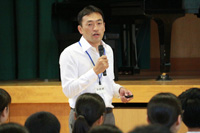 1年生は、7月末に3日間の職場体験をすることになっており、現在は、総合的な学習の時間で、いろいろな職業調べを行っている最中です。これまでの書物やネットから調べた事だけで無く、人生の先輩から、その職業に就いた理由や、仕事の苦しさ以上の楽しさをお聴きすることでより身近に感じることができると思います。ご講話の後には、生徒から次々と質問があがり、高い関心があることが改めてわかりました。