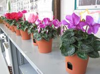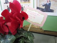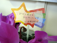PTA母親委員会より、メッセージのついたシクラメンを頂きました