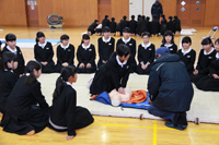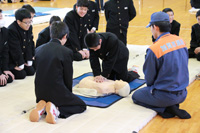 保健体育の授業で、加賀市消防署員をお招きし、救急救命法の講習会をしていただきました。