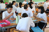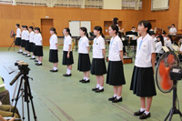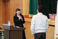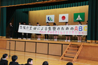 11月6日(月)に、台湾から桃園市立青埔国民中学の1,2年生20名と交流会を持ちました。3,4限の時間帯で歓迎セレモニーを行い、①本校の紹介、②吹奏楽部の歓迎の演奏、③校歌の紹介、④交流のゲーム、⑤質問タイム、⑥プレゼント交換を行いました。また、1,2年生の全クラスで一緒に給食を食べ交流を持ちました。5限目は、1,2年生の授業を参観し、日本の授業の様子も見てもらいました。国民学校の生徒達は、とても充実したひとときを過ごしていました。本校生徒にとっても、質問タイムを通じて、台湾の中学校の様子や部活動など様々なことを知る貴重な機会となりました。