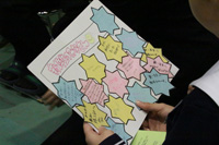 2年生を対象として、修学旅行の事前学習を行いました。来年5月に行われる関西方面の修学旅行では、1日目には広島平和学習、2日目に京都グループ別自主プラン、3日目には大阪USJというコースで学習してくる予定です。特に、2日目の京都グループ別自主プランでは、各グループ毎に、路線バスや地下鉄を利用し京都を見学するので、京都の地理や有名な見学地についての学習が不可欠です。今回は、添乗して下さる旅行社から、京都のまわり方を丁寧に説明して頂きました。生徒達は真剣に、そして楽しく教えてもらう事ができ、コースを決めるポイントが理解できたと思います。