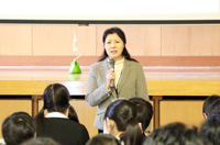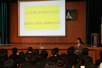 本日、午前中に2年生、午後に1年生を対象にして、思春期健康講座を開きました。講師は、ゆたか助産院の吉田みち代助産師さんにお願いしました。