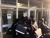 中学校では、登校する子ども達の安全と、職員の通勤の妨げにならないように、送りのお車は、校門正面や、校地内に入らず、近くの道路でお子様を下ろしていただくことをお願いします。