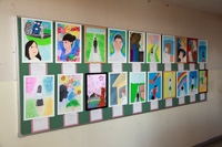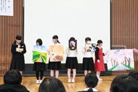 あすなろ学級の教育活動発表の場として、加賀市美術館で行われた「ふれあい展」に様々な作品を展示しました。1年間の学校生活で作成した作品は大変多く、展示スペースの壁面いっぱいに入りきらないほどでした。学級目標、書き初め、カレンダー、年賀状、レポート、植物の栽培、交流授業での作品など多岐に及んでいます。この「ふれあい展」を通して、他校児童生徒の作品も鑑賞することができ、大変参考になりました。「ふれあい展」は、1月28日~30日までの開催でした。