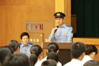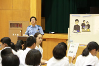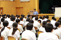大聖寺警察署少年係の佐藤さんをお招きし、PTA対象の非行被害防止講座を開きました。