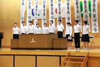 9月23日、24日に行われる加賀市秋季新人大会に臨む1,2年生のチームの激励会を行いました。今年は剣道競技に参加できる選手がおらず、本校からは7つの運動部が参加します。合わせて、加賀地区新人陸上大会に参加する陸上部も一緒に激励しました。