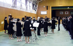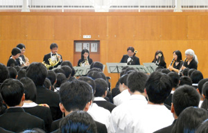 石川県音楽文化振興事業団の主催で、オーケストラ・アンサンブル金沢のメンバー10名によるスクールコンサートを開いていただきました。歌劇「フィガロの結婚」序曲をはじめ全7曲と、吹奏楽部のメンバーが加わり校歌も演奏して頂きました。プロのオーケストラの演奏に触れる機会は多くないので、子どもたちも楽器の響きに体をあずけて聞き入っていました。とても楽しい時間となりました。