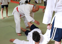 今年度、石川県教育委員会より、武道等指導充実・資質向上支援事業で、外部指導者派遣校に指定されました。外部指導者として、小松市柔道協会会長 山下豊 先生をお招きして、2年生を中心に、体育柔道の指導を手伝っていただいています。