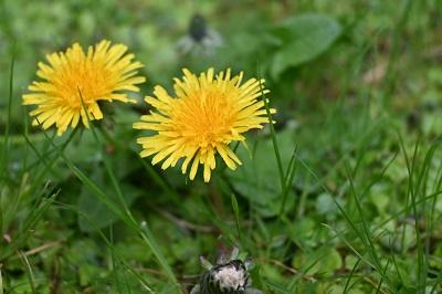 中庭(平成の広場)にタンポポが咲いていました。緑の中の黄色がきれいです。