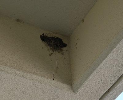 体育館の軒下に燕の巣を発見! 田園に囲まれた学校ならでは・・