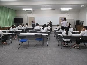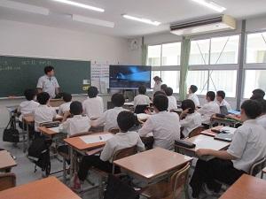 現代は、スマホやPC・ゲーム機などで、誰でもネットにつながる社会です。悪質な書き込みや詐欺、情報漏洩などのニュースが世間をにぎわせています。警察の方からは、一歩間違えば、自分自身が脅迫や詐欺の被害を受けたり、名誉棄損のトラブルに巻き込まれたりするかもしれない、などの話がありました。また、「ルールを守ること」「自分を守ること」の大切さを、教えていただきました。学校でもネット利用のモラルやマナーについて注意喚起していますが、警察の方から実感を伴って話を聞けたのは、生徒にとって良い体験になったと思います。
