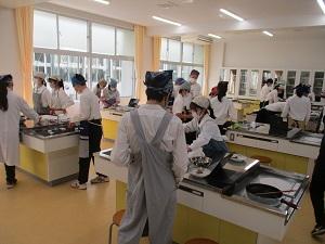 新しくなった調理室で、1年生が調理実習を行っていました。メニューは豚生姜焼きでした。校内には、香ばしいにおいが漂い、食欲がそそられました。コロナ禍で、一時期調理実習が止まっていましたが、今年度の後半から再開しています。やっぱり、調理実習のときの生徒の表情は、生き生きしていますね。