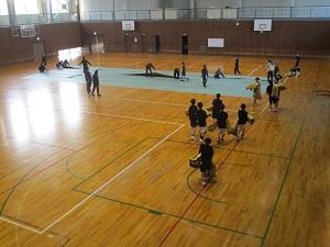今週金曜日は、いよいよ卒業式です。今日の放課後、一部の生徒に手伝ってもらい、体育館にシートを敷きました。明日以降、ステージを組み立てたりいすを並べたりしながら、大切な舞台を作っていきます。3年生は、今日と明日、最後の難関に挑んでいます。しっかり準備して、ハレの門出を祝いたいと思います。