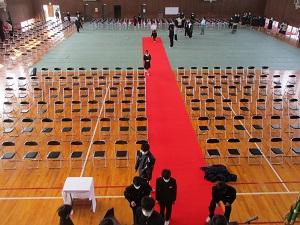今日は、1・2年生で、卒業式に向けた準備をしました。体育館では、2年生がいすを並べたりレッドカーペットを敷いたりしてくれました。今年は3年ぶりに、全校生徒が参加する卒業式を実施します。全校生徒・職員で、コロナ禍を乗り越えた3年生を祝福したいと思います。