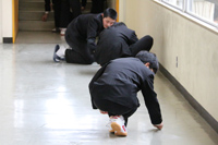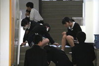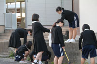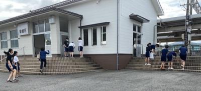 ・生徒玄関内で受付を行い、検温と手洗いを行ったあと活動する。