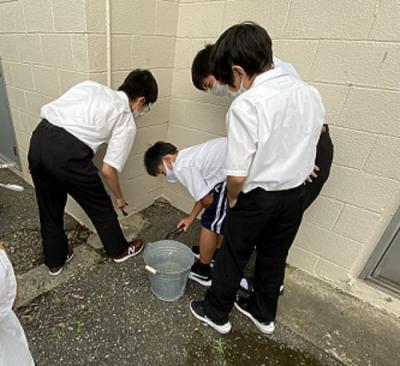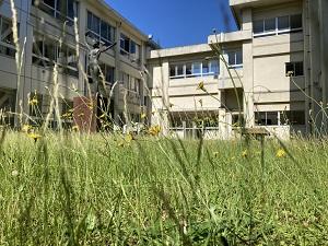 生徒たちもこの雑草のように、太陽の光を浴び、たくさんの栄養を吸収し、ぐんぐん成長してほしいと願っています。蒸し暑い日が続きます。熱中症予防のため、登校の際には十分な水分を用意してください。