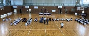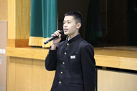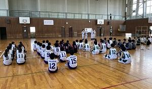 本日、部活動加賀地区大会の激励会がありました。体育館には3年生のみが集まり、1・2年生は教室でリモート参加しました。