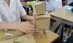 2年生の総合的な学習で、未来の加賀市について考えています。未来の加賀市のために、段ボールで何か作っています・・。 いったい何ができるのでしょう・・?