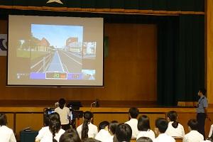1年生を対象に、大聖寺署の警察官をお招きして、交通安全教室を開催しました。自転車シミュレーターを使って、自転車の乗り方について確認しました。一旦停止が十分にできていないことや、進路変更の際の後方確認が十分にできていないことがわかりました。警察の方からは、「①信号を守ること ②一旦停止を守ること ③飛び出さないこと」の三点について特に注意を受けました。自分の命は一つしかありません。これからも、交通安全には十分に注意するよう、指導していきます。ご家庭でも、ご協力をお願いします。