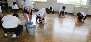 全校生徒で廊下の汚れ落としとワックスがけをしました