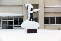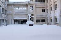 昨日までの大雪で、校舎周りや体育館屋根には70~80㎝の積雪があります。昨日は職員で出来るだけ除雪をしましたが、一晩で元に戻り、下の写真のように生徒玄関前、中庭も沢山の積雪があります。