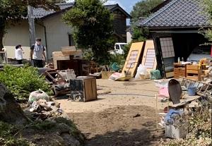 先週の大雨で隣町が大きな被害を受けたので、昨日、復旧作業のお手伝いをしました。町の中至る所に、流木や土砂、家具などが瓦礫となって積まれていました。また、町全体に、独特のにおいが漂っていました。ある家では、人の背丈以上の高さの所に水面の跡が残っており、改めて、水害の怖さを実感しました。