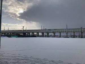 あたりはすっかり雪化粧です。寒いのは苦手ですが、美しい冬景色を見るのは好きです。新幹線の高架橋に隠れて見えにくいですが、晴れ間に見える白い山々もとってもきれいです。しばらくは我慢の季節が続きますが、春のためにしっかりと力を蓄えたいですね。