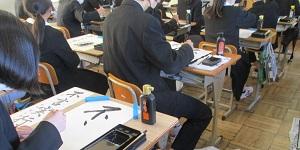 生徒たちは、とめ・はね・はらい、を意識したり、文字のバランスを意識したりしながら、丁寧に練習をしていました。自分の書いた字に納得がいかず、何度も書き直している生徒もいました。