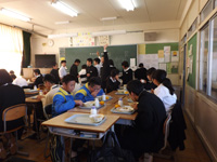 11月6日(月)に、台湾から桃園市立青埔国民中学の1,2年生20名と交流会を持ちました。3,4限の時間帯で歓迎セレモニーを行い、①本校の紹介、②吹奏楽部の歓迎の演奏、③校歌の紹介、④交流のゲーム、⑤質問タイム、⑥プレゼント交換を行いました。また、1,2年生の全クラスで一緒に給食を食べ交流を持ちました。5限目は、1,2年生の授業を参観し、日本の授業の様子も見てもらいました。国民学校の生徒達は、とても充実したひとときを過ごしていました。本校生徒にとっても、質問タイムを通じて、台湾の中学校の様子や部活動など様々なことを知る貴重な機会となりました。