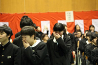 うららかな春の光の中、第56回卒業式を挙行し、115名の卒業生を送り出すことが出来ました。送辞では、卒業生へのあこがれと、次への決意、答辞では、学校への感謝と後輩達に送る言葉が述べられました。目を潤ませ、ほほを涙がつたう生徒も多く見られ、別れを惜しんでいました。