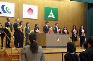 離任式では、1,2年生に加え、3月の卒業生や、多くの過年度卒業生も参列してくれました。